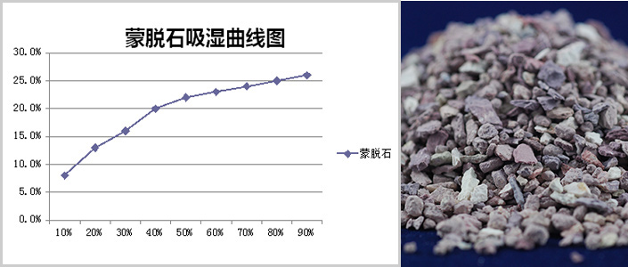 蒙脫石吸濕性能表(25℃ RH10%-90%):