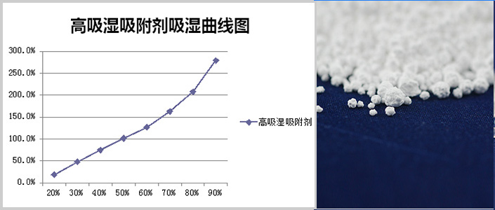 氯化物與凝膠登固化物質(zhì)進行混合,在25℃,90%濕度條件下,吸濕能力高達(dá)280%以上,吸附劑在充分吸濕后變成凝膠狀或塊狀,不反滲。