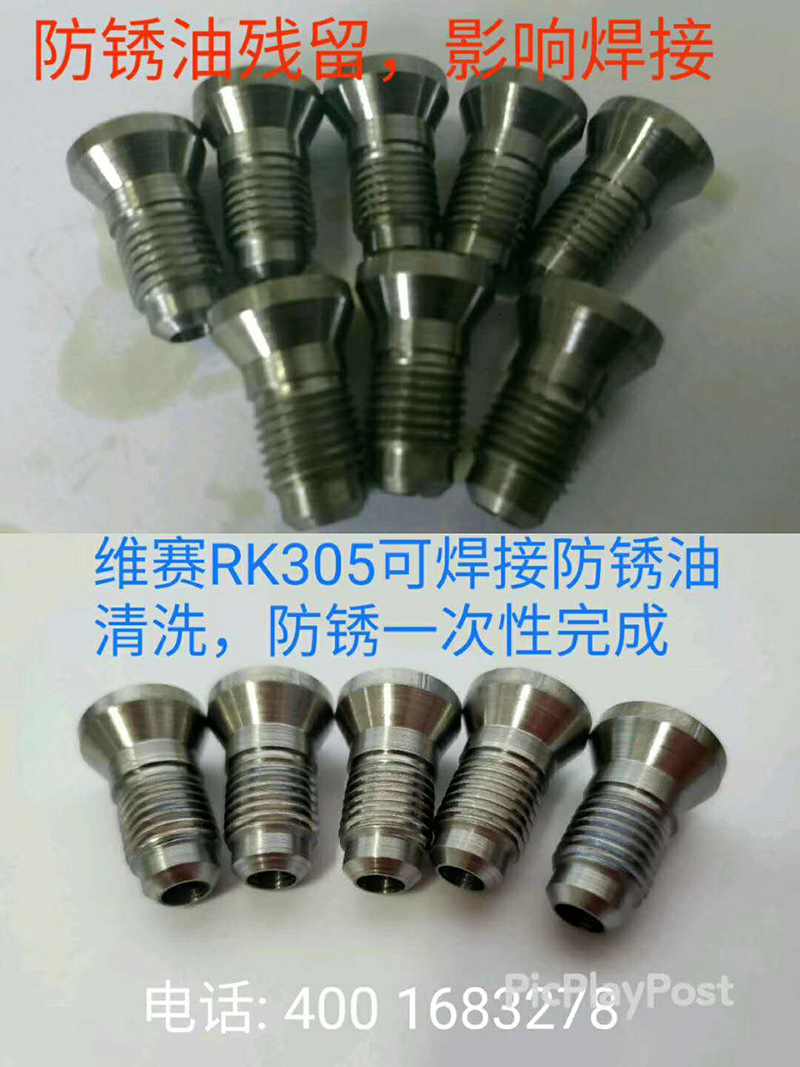 采用本品清洗防銹后,金屬零件表面無殘留,滿足精密焊接和熱裝配的無油防銹工藝需要,干式切削不冒煙,不粘刀。